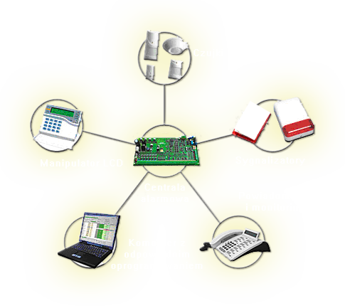 - obsługi i kontroli pracy systemu alarmowego: centrale alarmowe, manipulatory alarmowe;